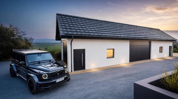 Projekt przedstawia nowoczesny budynek gospodarczy o prostej i funkcjonalnej formie, zaprojektowany na rzucie prostokąta o wymiarach 6 × 20 metrów. Obiekt wyróżnia się czystą, elegancką bryłą oraz nowoczesną kolorystyką, która doskonale wpisze się zarówno w otoczenie zabudowy jednorodzinnej, jak i terenów gospodarczych.