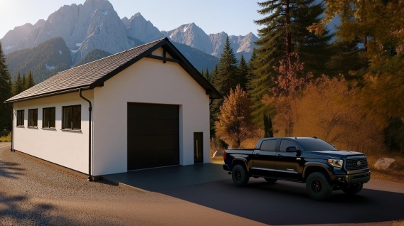 Projekt garażu K2245 to nowoczesny i funkcjonalny budynek o prostej, zwartej bryle, zaprojektowany na rzucie prostokąta o wymiarach 10 × 15 m.
