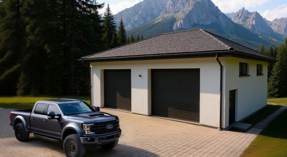 Wysokość robocza 4,1 m daje szerokie możliwości adaptacji obiektu — garaż można z łatwością przekształcić w niewielki warsztat samochodowy, w którym bez problemu zmieści się podnośnik kolumnowy lub inny sprzęt serwisowy.